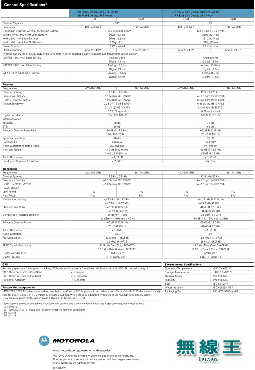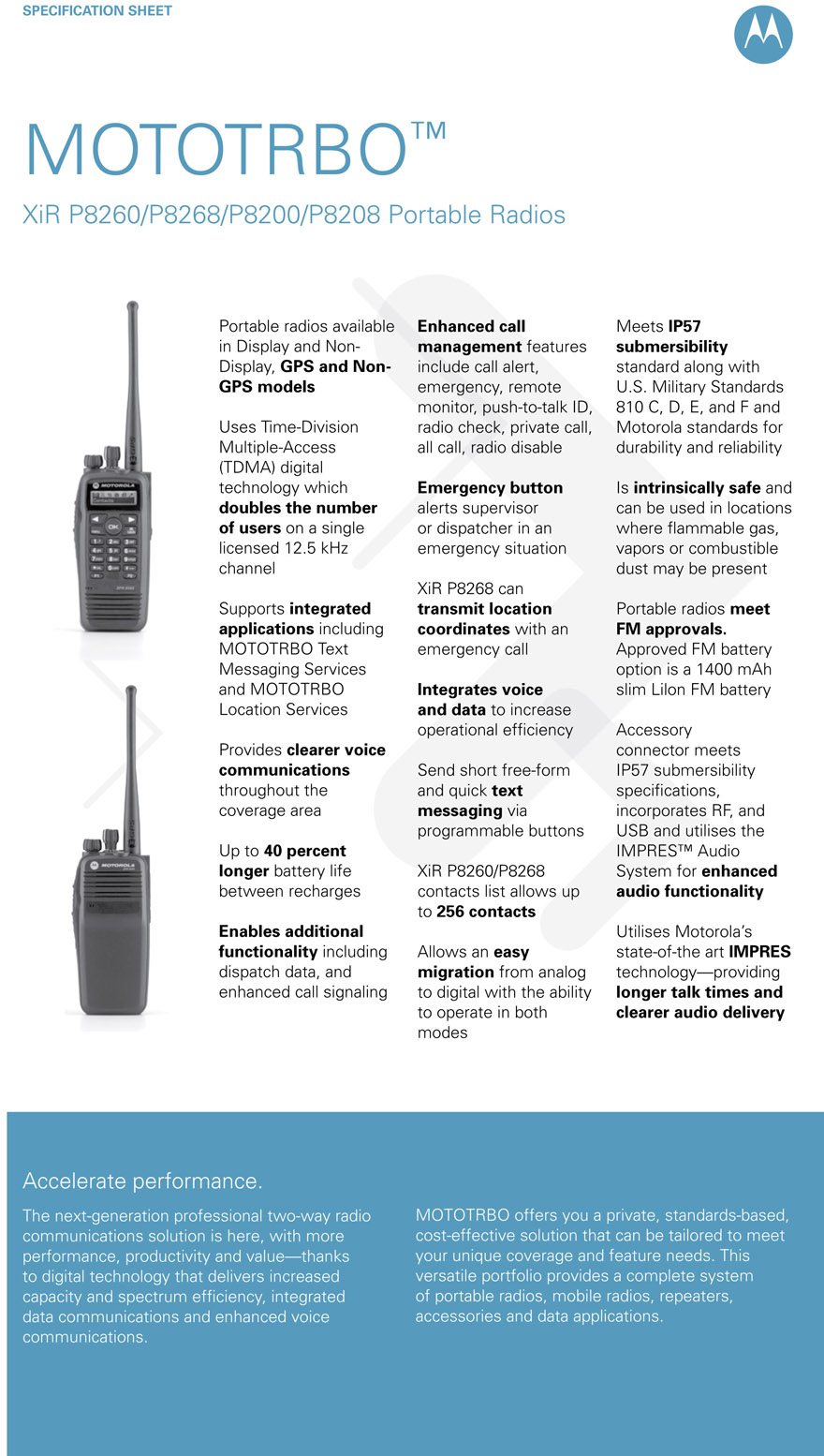 MOTOTRBO™ XiR P8260/P8268/P8200/P8208
